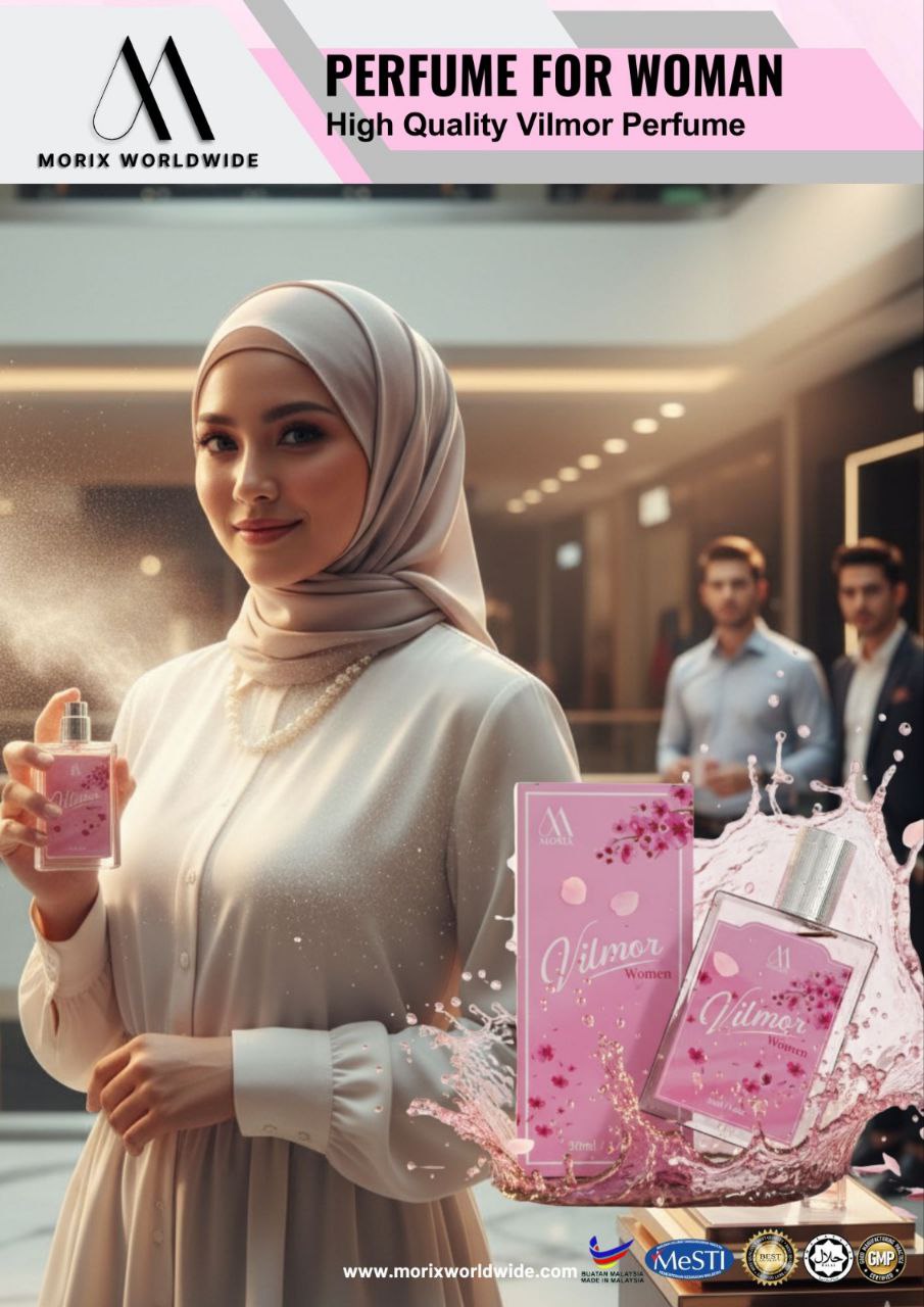 Melangkah dengan keyakinan dan aura memukau setiap kali anda hadir. PERFUME VILMOR WOMEN – KEANGGUNAN YANG BERBICARA TANPA KATA Vilmor Perfume oleh Morix Worldwide direka khas untuk wanita moden — anggun, lembut, namun penuh pesona. Setiap semburan menghadirkan: Haruman tahan lama yang kekal sepanjang hari Aroma mewah bertaraf premium yang menarik perhatian Wangian inspirasi Perancis — elegan, lembut, dan memikat jiwa Kerana keanggunan sebenar bukan sekadar dilihat, tetapi dirasai dan diingati. Jadilah wanita yang meninggalkan memori indah melalui haruman dirinya. Vilmor Perfume – Di Mana Keyakinan Bertemu Keanggunan